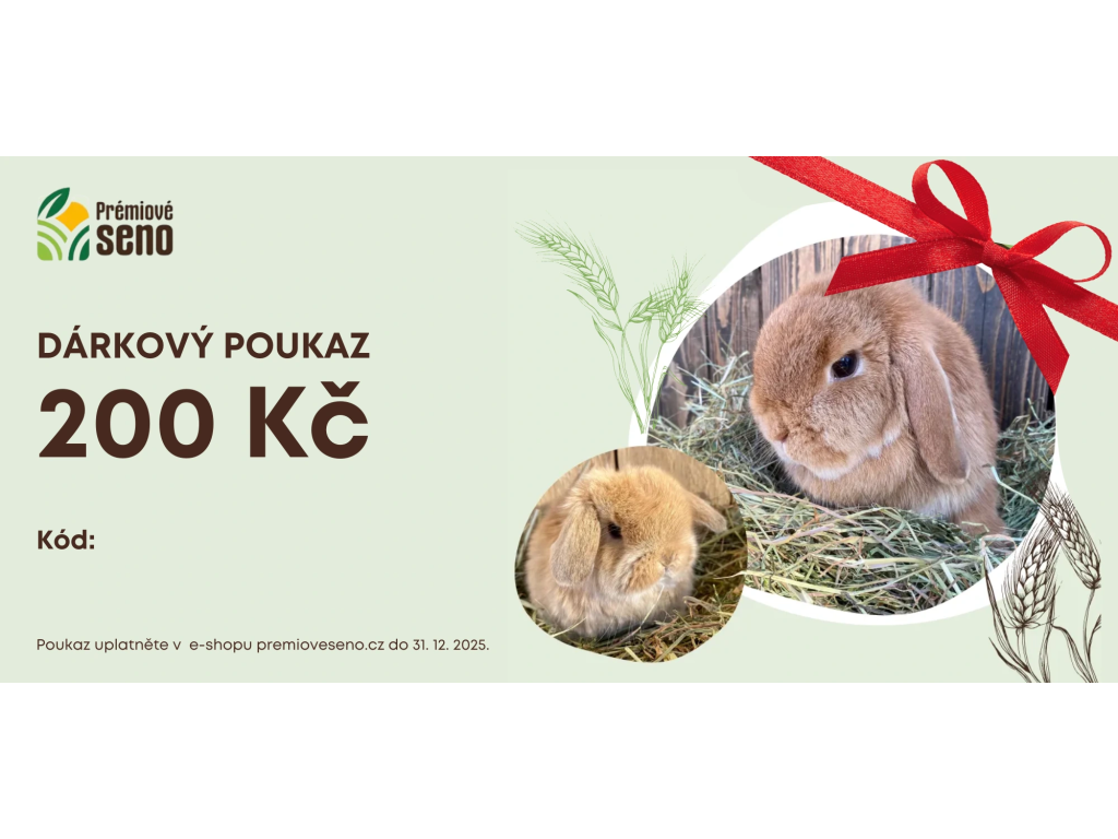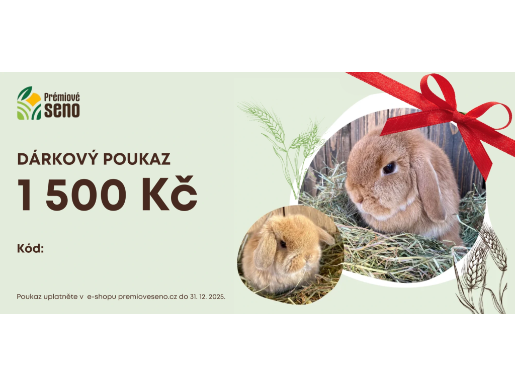 Náš dárkový poukaz je skvělou volbou v případě, že si nejste jistí, co vybrat pro své blízké, kteří chovají králíčky, morčata nebo jiné drobné hlodavce. Díky němu jim dáte možnost zvolit si z naší prémiové nabídky přesně to, co jejich mazlíčci potřebují – od kvalitního sena až po jedlé hračky a další produkty.