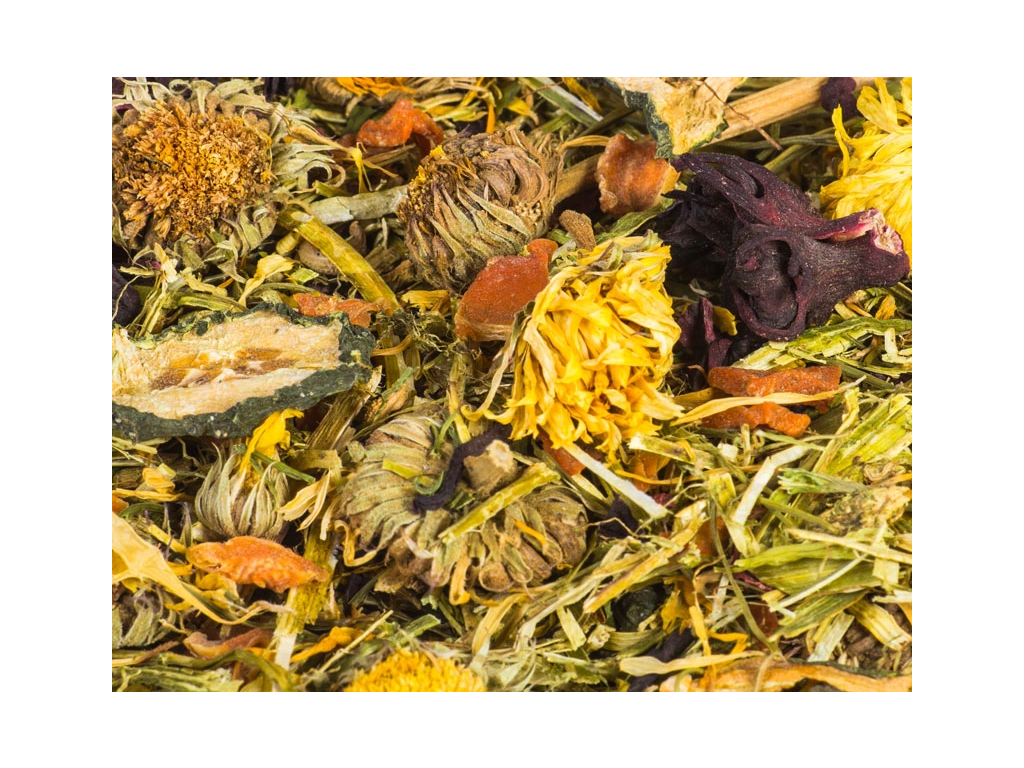 V naší směsi Podzimní mix naleznete pečlivě vybrané byliny a zeleninu, jako jsou vojtěška, mrkev, ibišek, petrželová nať, měsíček a plátky okurky. Každou jednotlivou složku jsme vybírali s důrazem na kvalitu a chutnost, aby si vaši mazlíčci na směsi opravdu pochutnali.